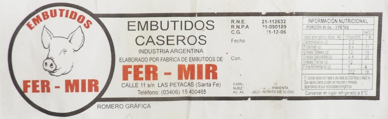 El Ministerio de Salud provincial, a través de la Agencia Santafesina de Seguridad Alimentaria (Assal), prohibió el fraccionamiento, tenencia, transporte, comercialización y exposición en todo el territorio nacional del producto alimenticio rotulado como “Embutidos caseros” marca FER-MIR.