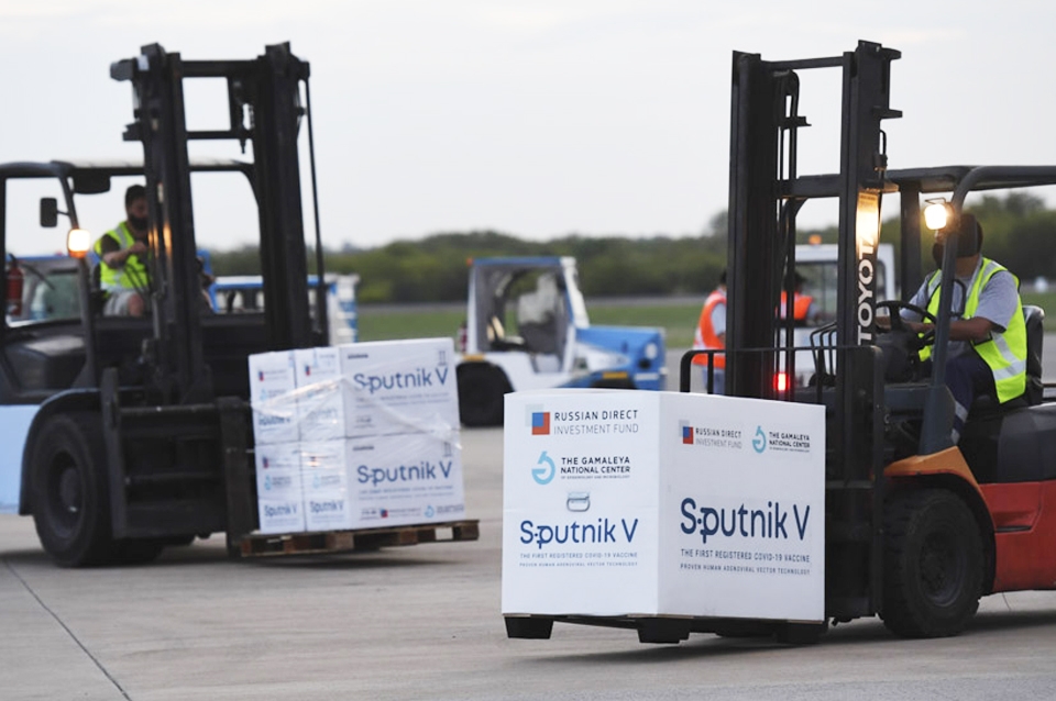 La aeronave Airbus 330-200, matrícula LV-GIF, con el número de vuelo AR1067, tocó pista a las 15.30 proveniente de Moscú, con una partida de vacunas en su bodega conformada por "250.000 dosis del componente 1 y 50.000 dosis del componente 2".