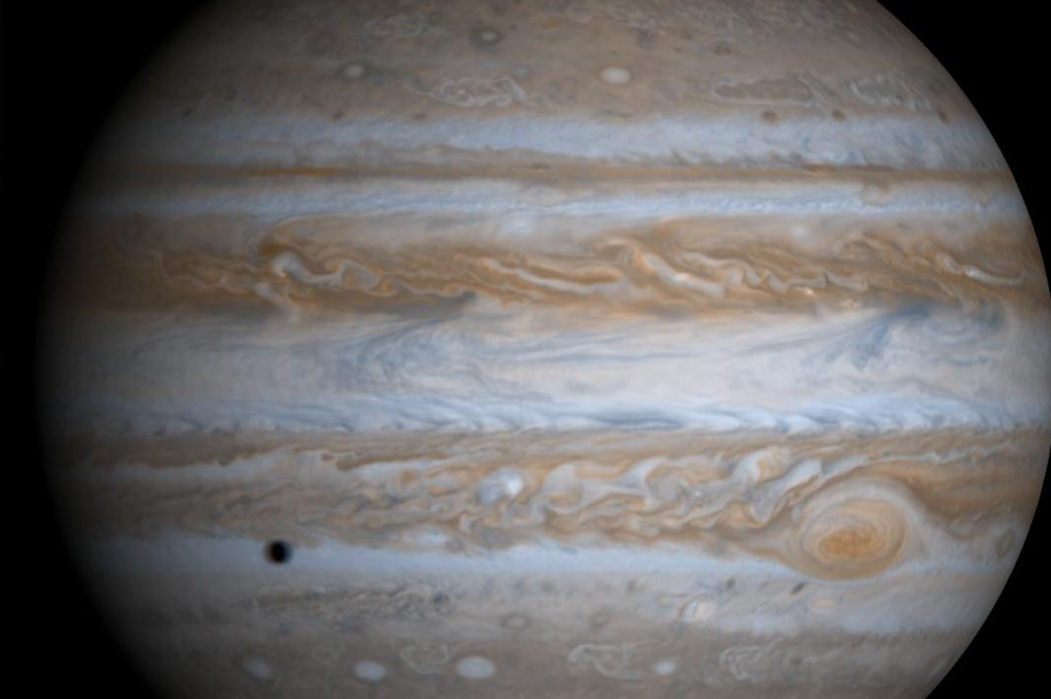 Júpiter, el planeta gigante gaseoso, es famoso por sus bandas de gas rojas y blancas, estas como nubes que se mueven en direcciones contrarias y en ciertos lugares se arremolinan sin cesar.