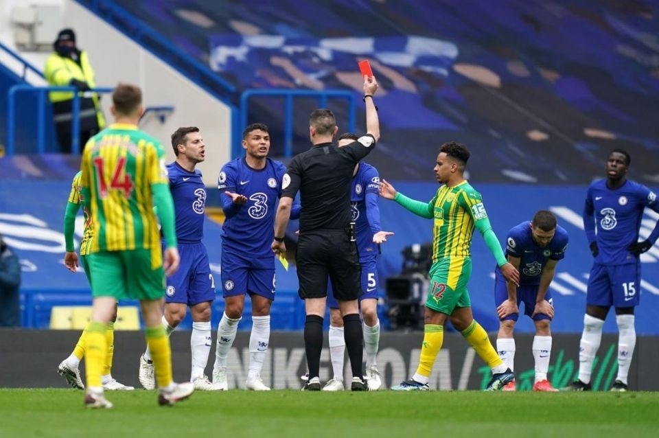 Chelsea, que jugó en inferioridad numérica desde los 28 minutos por la expulsión del brasileño Thiago Silva, se mantuvo en el cuarto lugar con 51 puntos y West Bromwich, en el penúltimo escalón con 21.