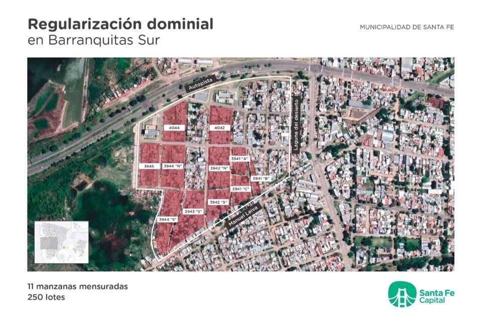 Además de Barranquitas Sur, Pallero recordó que hay 1.800 lotes para mensurar y escriturar en los siguientes barrios: Marcos Bobbio, Barranquitas Oeste, San Pantaleón, 29 de Abril, Varadero Sarsotti, Estanislao López, Pompeya y Santa Rosa de Lima y San Lorenzo.