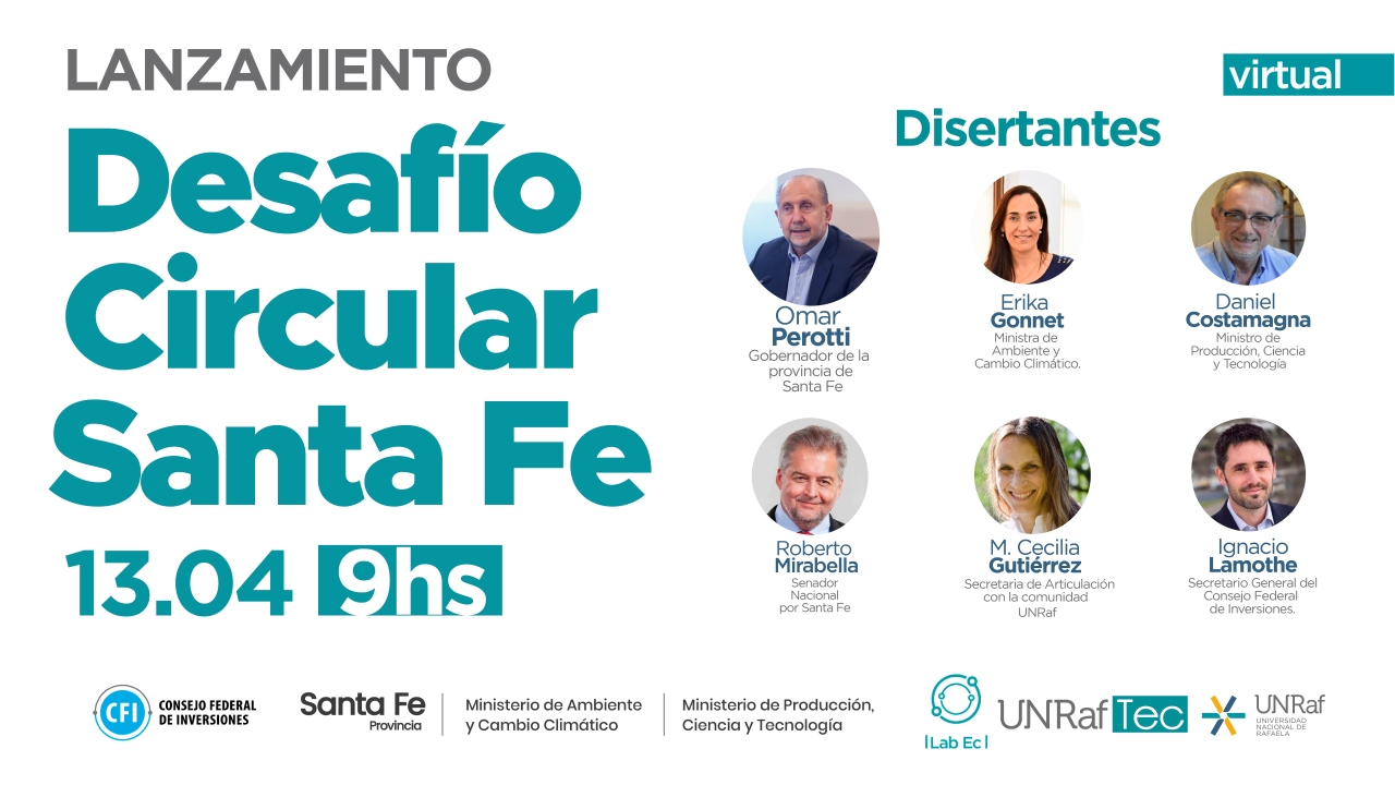 El Gobierno de Santa Fe inicia el próximo martes 13 de abril, a partir de las 9:00, un ciclo de diálogos virtuales con referentes destacados del sector productivo, académico y social, que vienen aplicando los principios de la economía circular y la bioeconomía. Los mismos forman parte del Plan de Economía Circular que la provincia está elaborando junto al Consejo Federal de Inversiones y la Universidad Nacional de Rafaela.