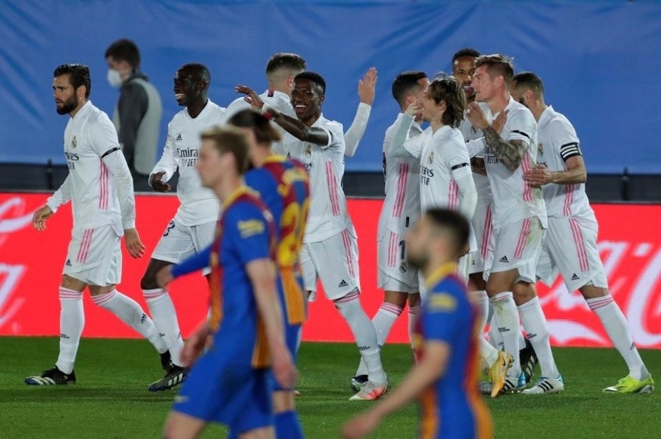 Real Madrid, siendo contundente en el primer tiempo y aguantando en el complemento, venció este sábado 2-1 a Barcelona en el clásico de España en el estadio Alfredo Di Stéfano y alcanzó al Atlético Madrid en la punta de La Liga, en el marco de la 30ª fecha.