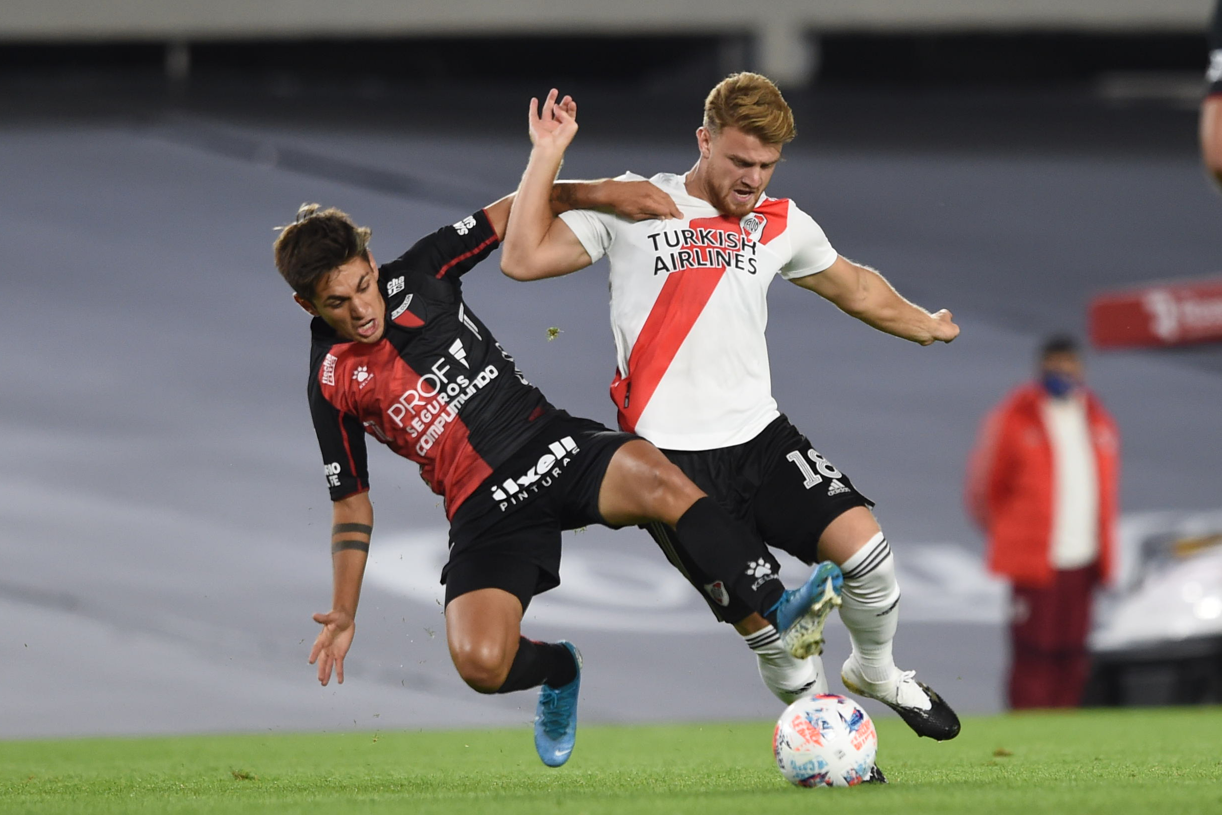 Así, un desborde de Angileri por izquierda propició un remate franco del colombiano Borré, que salió afuera por muy poco. Y, un rato más tarde, un desborde de Montiel no encontró una rápida resolución de Alvarez.