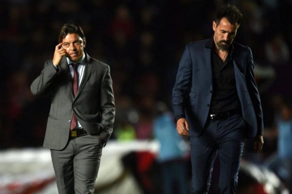 El historial oficial ante equipos dirigidos por Eduardo Domínguez marca que el Muñeco no pudo imponerse en ninguno empataron cuatro veces y Domínguez ganó los dos restantes. River le ganó un amistoso a Nacional en enero de 2019 pero no era por los puntos. Además, el actual técnico del Sabalero es a quien más veces Gallardo enfrentó y no pudo vencerlo. Detrás de él se ubican Diego Cocca (Cuatro partidos, ninguna victoria, un empate y tres derrotas) y Diego Dabove (tres partidos, tres empates).