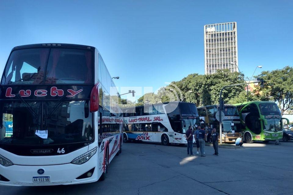 Un grupo de micros de empresas de transporte turístico autoconvocadas corta desde primera hora de la mañana el ingreso a la terminal de ómnibus de Santa Fe.