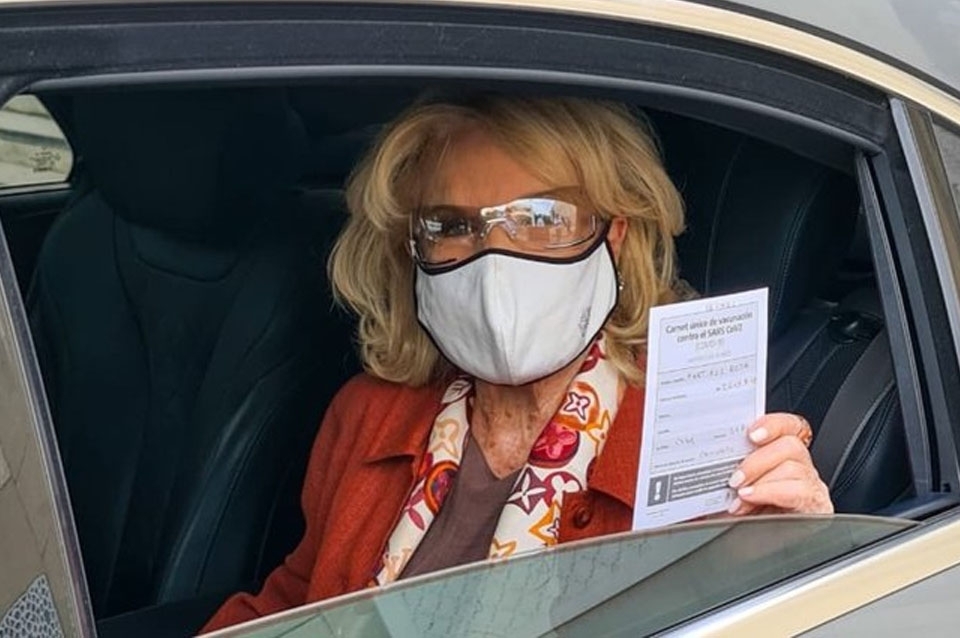 Mirtha Legrand completó este miércoles la segunda dosis de la vacuna Sputnik V contra el coronavirus. La diva de los almuerzos fue acompañada por su nieto, Nacho Viale, por su asistente Elvira y por personal de seguridad.