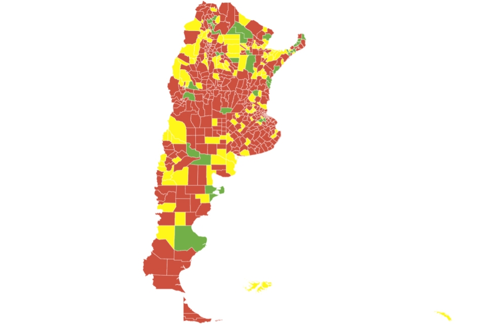 Actualmente son un total de 159 departamentos en todo el país, que incluyen a la ciudad de Santa Fe. Hace 14 días el número era de 85 en Argentina y solo cinco en el territorio provincial, según los datos oficiales.
