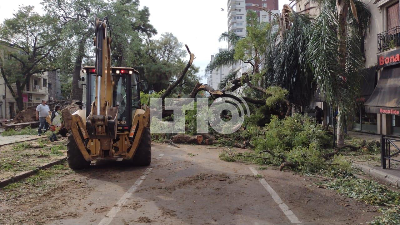 Desde muy temprano en la mañana, personal de la Municipalidad trabaja arduamente para retirar los árboles que cortan la calzada e impiden el tránsito sobre Boulevard sentido oeste-este entre Güemes y Avellaneda.