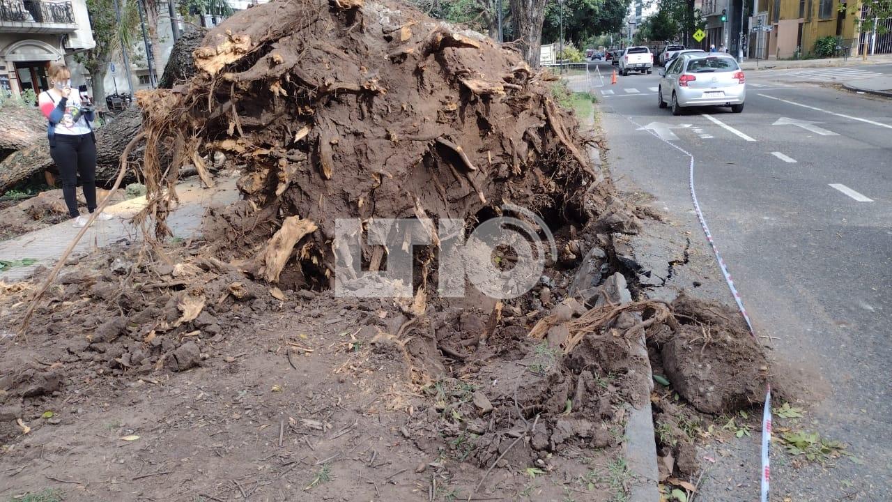 Además, un motociclista que circulaba por el lugar debió tirar la moto y correr para evitar ser golpeado por los árboles.