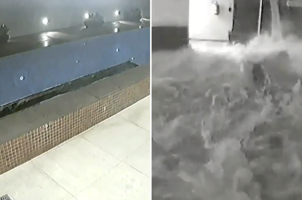La pileta tiene 25 metros de largo y se encuentra ubicada en la zona de ocio del condominio. Como puede verse en cada video, con el derrumbe cayó toda el agua en el garage junto con los escombros. El estruendo del colapso puso en alerta a los habitantes del complejo edilicio y, atemorizados, muchos dejaron sus hogares sin llevarse nada.