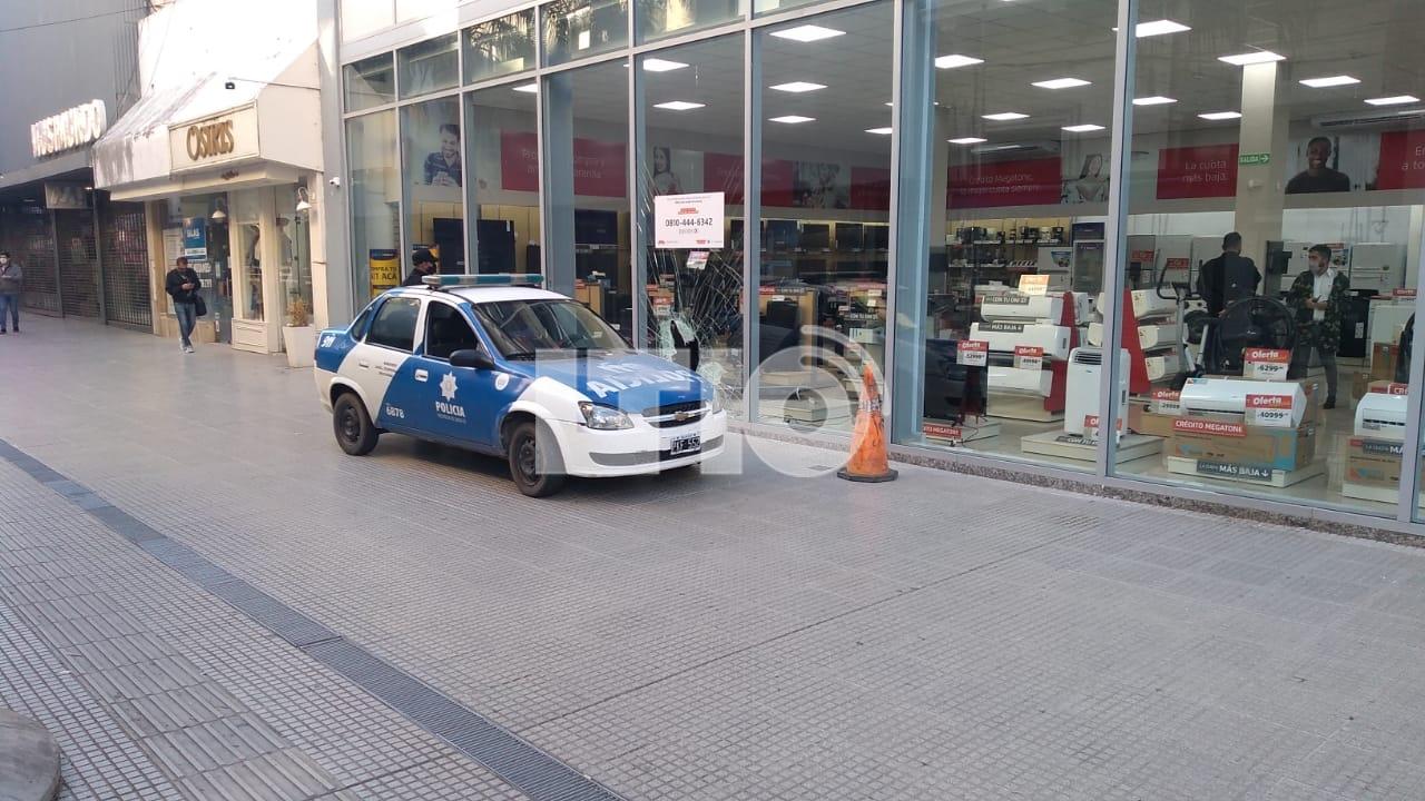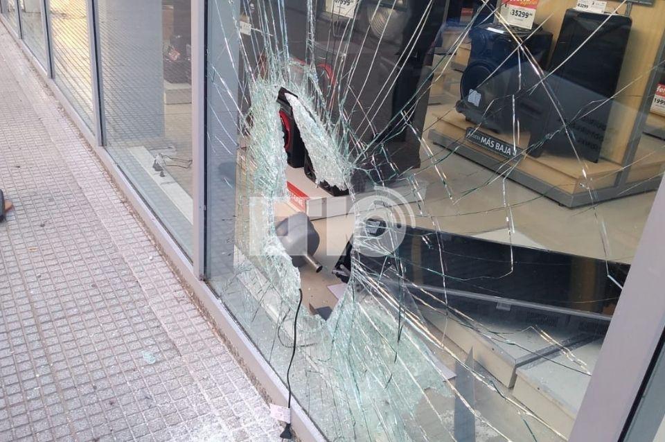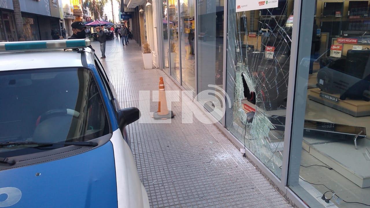 En la mañana de este miércoles, una de las grandes vidrieras de un local de venta de electrodomésticos ubicado en la esquina de San Martín y La Rioja, amaneció con un gran hueco por el que ingresó y salió un delincuente.