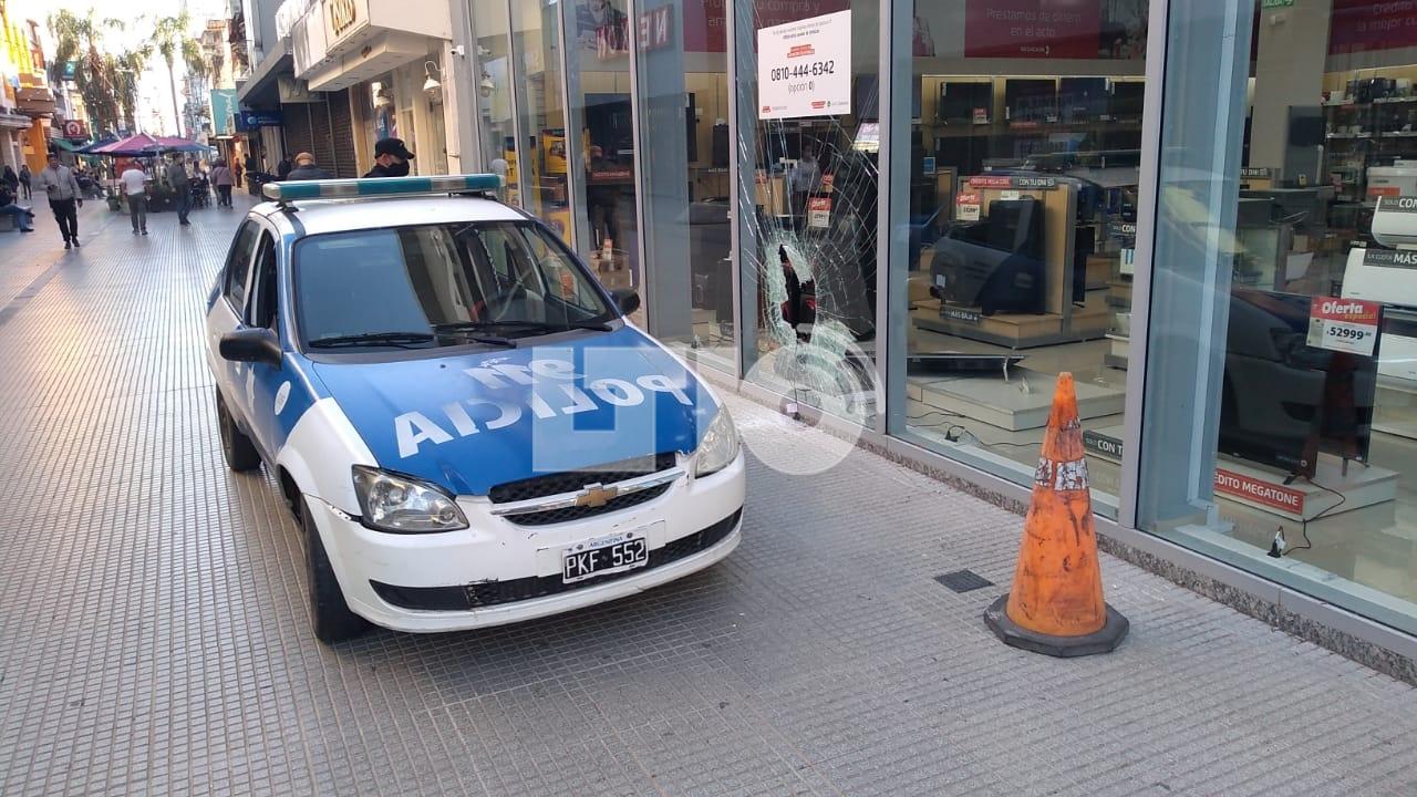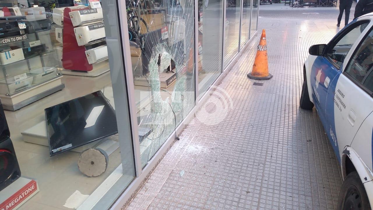Se trata del panel que da a la peatonal San Martín. Con la base de una sombrilla rompieron el vidrio y lograron acceder al local.