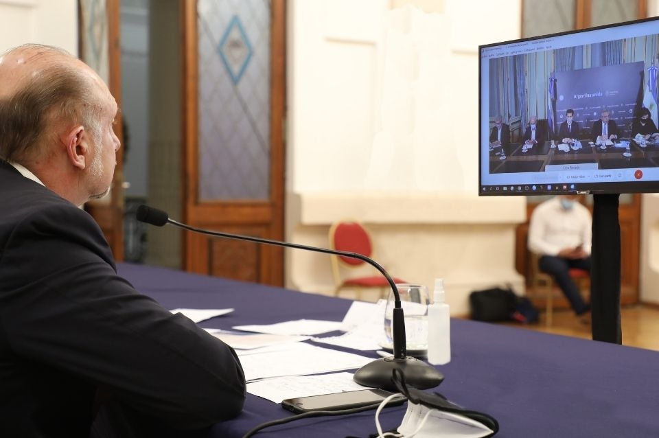 El gobernador Omar Perotti, y la ministra de Salud, Sonia Martorano, participaron este miércoles, de una videoconferencia con el presidente de la Nación, Alberto Fernández, y gobernadores y gobernadoras de distintas provincias del centro y sur del país, para analizar la situación sanitaria y definir nuevas medidas para enfrentar la segunda ola de coronavirus que enfrenta nuestro país.