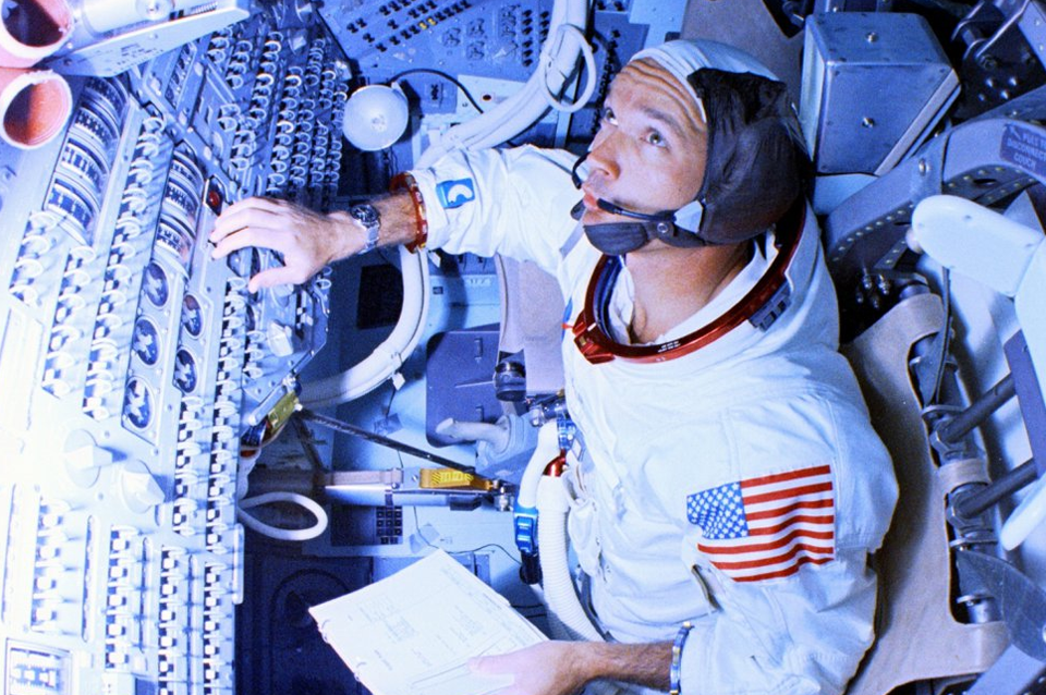 Tras formarse en la Escuela de Pilotos de Investigación Aeroespacial, voló dos veces al espacio: en la misión Gemini 10 (1966), cuando realizó paseos espaciales, y en Apolo 11 (1969), donde condujo el módulo de mando Columbia hacia la Luna.