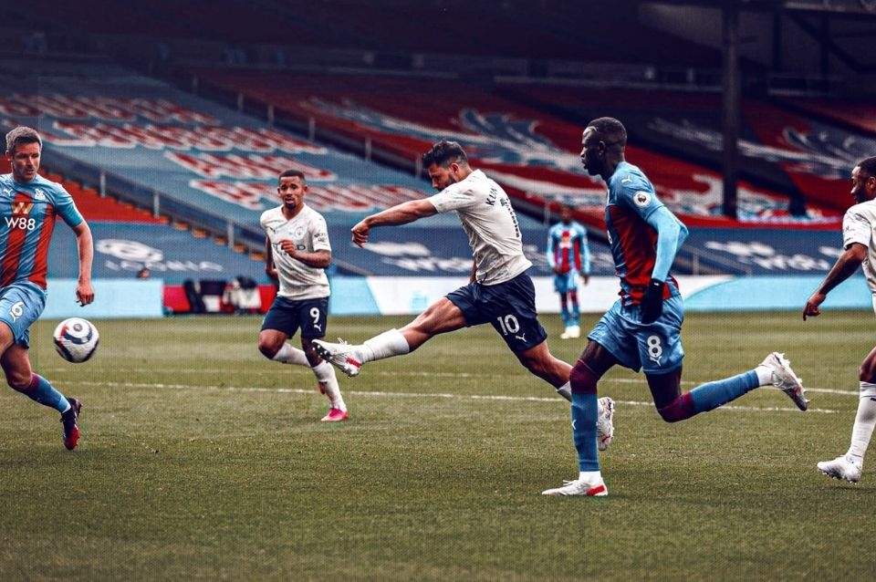 El argentino Sergio Agüero marcó el primer tanto de la victoria del líder sobre Crystal Palace por 2 a 0 y este domingo podría celebrar su quinto título