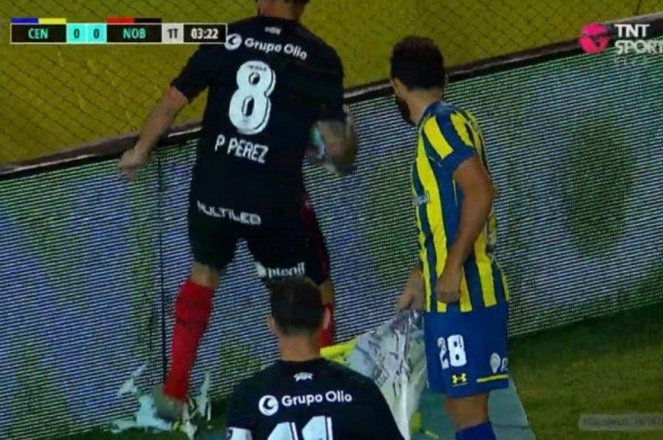 El juego estaba parado, hasta que el volante "leproso", Pablo Pérez, lo "solucionó": le metió un pisotón al artefacto y lo destruyó. Incluso por su acción se cruzó con algunos allegados del equipo local.