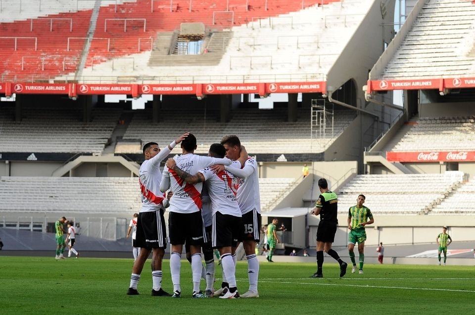 River: Franco Armani; Paulo Díaz, Robert Rojas, Héctor David Martínez; Gonzalo Montiel, Agustín Palavecino, Nicolás De La Cruz, Fabrizio Angileri; Julián Álvarez, Rafael Santos Borré y Jorge Carrascal. Director técnico: Marcelo Gallardo.
