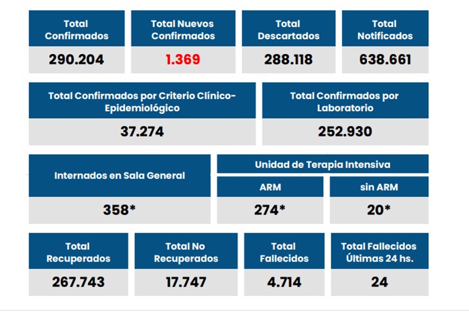 Con respecto a los fallecimientos se confirmó que hubo 24 decesos por Covid-19 en todo el territorio.