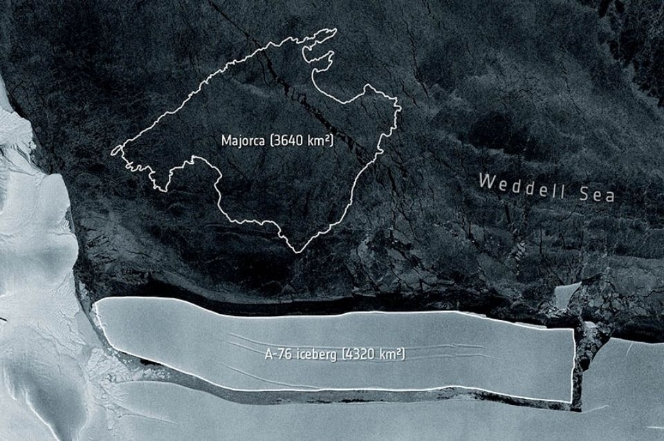 Las imágenes del inmenso bloque de hielo A-76 fueron tomadas por el satélite Sentinel-1, que pertenece al programa europeo de observación de la Tierra Copernicus.