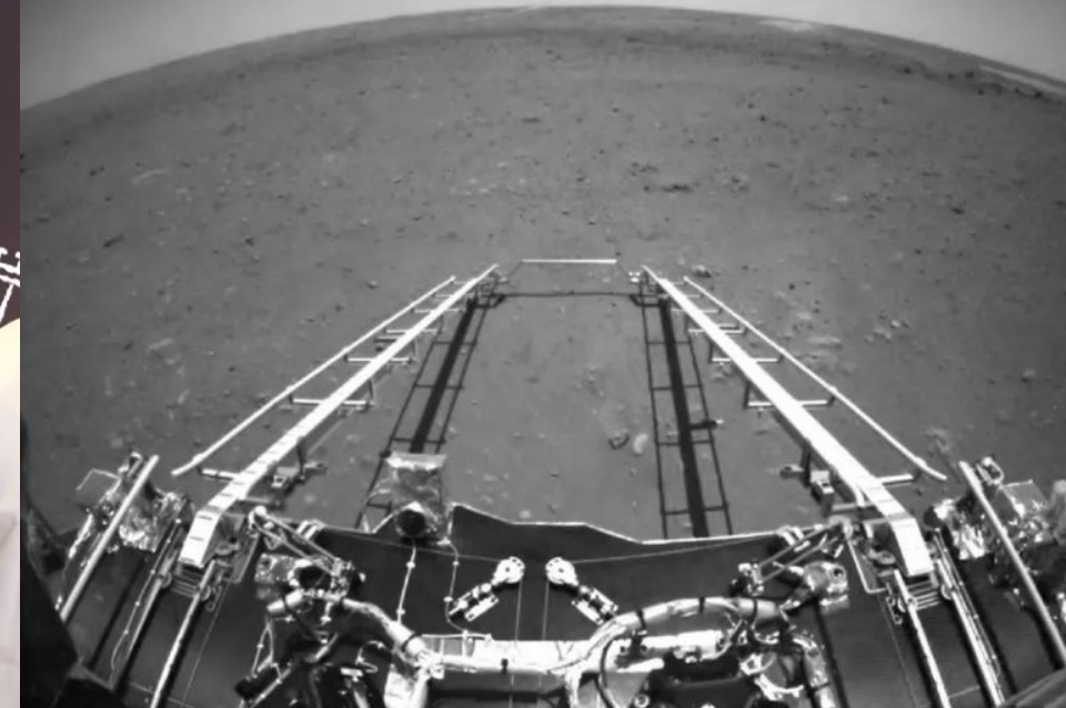 China dio a conocer las primeras imágenes china publicó las primeras imágenes después de que el robot explorador Zhurong, aterrizara en Marte. Las fotos muestran una vista frontal de un paisaje por delante del robot mientras se sitúa sobre su plataforma de aterrizaje.