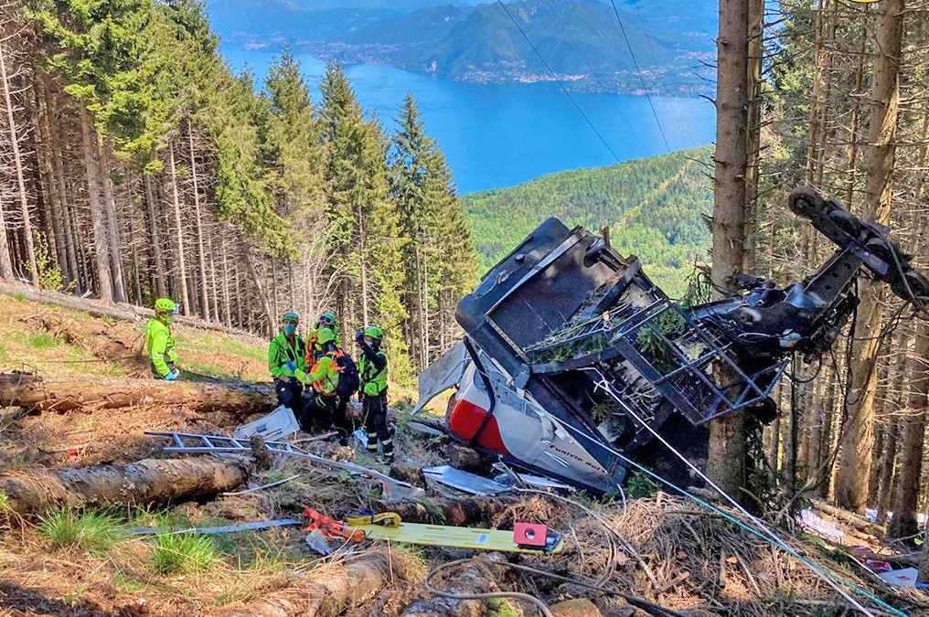 Según se informó en un principio, el accidente fue provocado por la rotura de un cable en la parte más alta del recorrido, cuando las 11 personas que viajaban en esta cabina se encontraban a 300 metros de la estación de llegada, en Mattarone, y a 1.490 metros de altitud. En ese sentido, cedió el cable y la cabina, con una capacidad para 40 personas, se estrelló contra el bosque.
