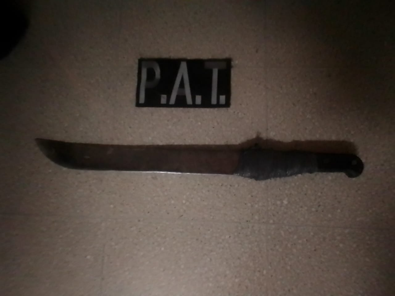 Este, al notar la presencia de los oficiales intenta darse a la fuga, pero es interceptado y aprehendido a escasos metros. En su poder tenía un machete de 60 cm aproximadamente con mango con cachas plásticas negras.