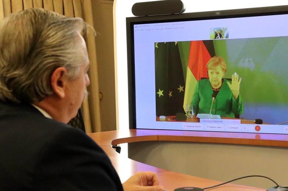 El presidente Alberto Fernández mantuvo una videoconferencia desde la Residencia de Olivos con la canciller de Alemania, Angela Merkel, quien se comprometió a seguir apoyando a la Argentina, junto al resto de los países visitados en la última gira europea, en su planteo al FMI, informaron fuentes oficiales.