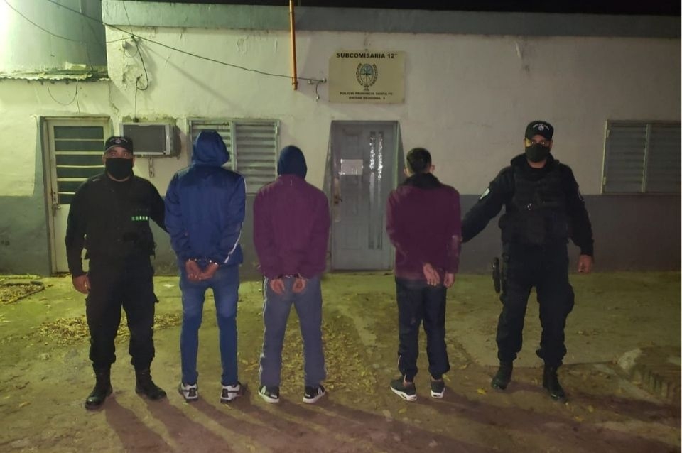 Minutos después, detuvieron a tres jóvenes de 18, 19 y 20 años e incautaron una pistola calibre 32 largo, con balas en su recámara.