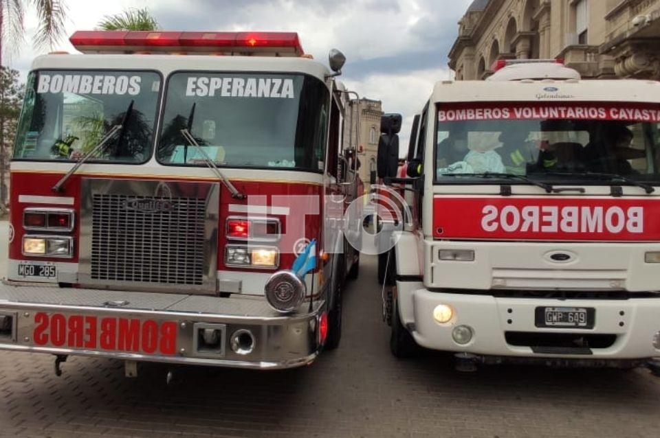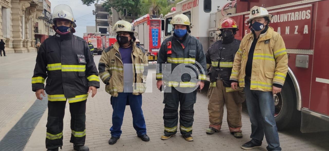 Esta mañana, bomberos voluntarios representantes de distintos cuarteles realizaron un abrazo simbólico a Casa de Gobierno "por la falta de respuesta del Gobierno" para que los nombren elementales, y estar incluidos en un plan de vacunación.