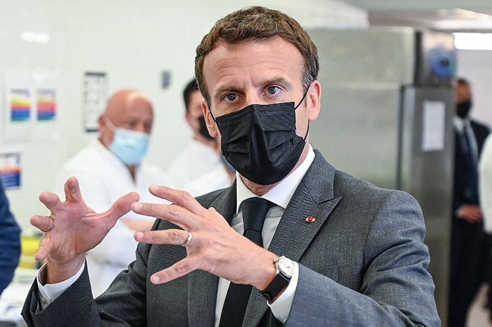 En un video subido a Internet, se ve a Macron acercarse a un grupo de personas ubicada detrás de una valla en la localidad de Tain-l'Hermitage, en el sureste de Francia.