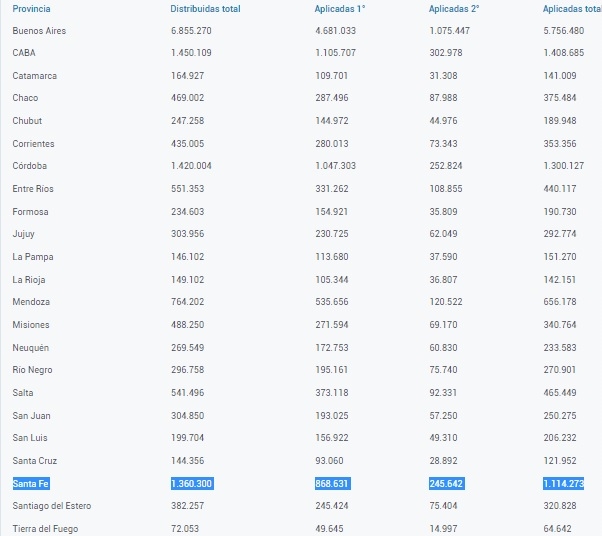 En el caso de la provincia de Santa Fe, las partidas del tan espera segundo componente, que permitirá completar esquemas de vacunación, consistirá en 31.200 dosis, de las cuales un 25% le corresponden a la ciudad de Santa Fe.