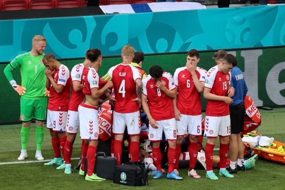Los jugadores del seleccionado de Dinamarca formaron de inmediato un círculo a su alrededor para impedir la captación de imágenes por parte de la televisión, que alcanzó a mostrarlo tendido sobre el césped con los ojos abiertos.