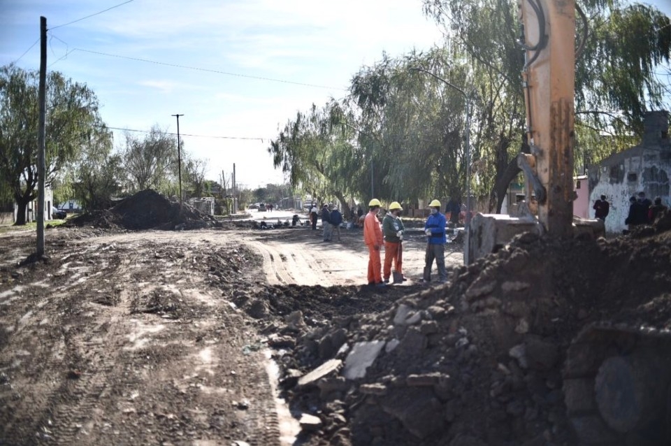 El intendente Emilio Jatón supervisó la marcha de las tareas y comentó que se retomaron tras un acuerdo con el gobierno provincial y con el financiamiento de la Secretaría de Hábitat. Además, destacó las obras de desagües, que permitirán evitar el anegamiento de las calles.