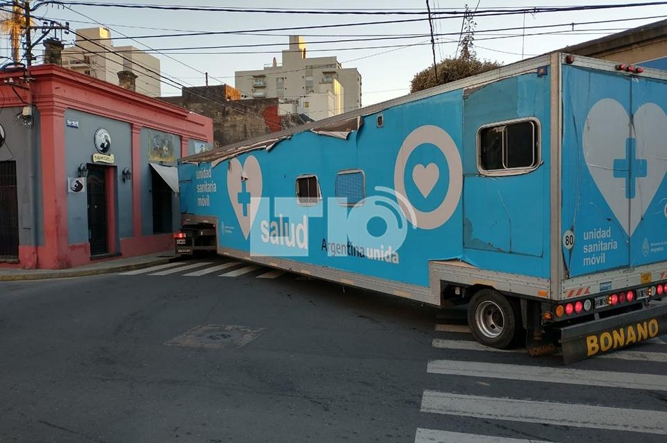 En la mañana de hoy el camión del Plan Detectar que se encuentra en la ciudad de Santa Fe para la realización de testeos por coronavirus, chocó contra un comercio en el centro santafesino tras realizar una mala maniobra.