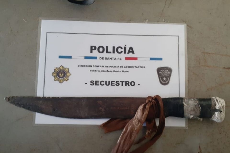 Se trataba de un machete de 43 centímetros de largo compuesto por una hoja de 31 centímetros y  una empuñadura casera con cinta aisladora y bolsa plástica.