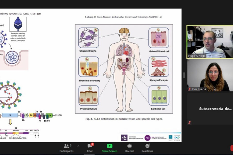 Durante el encuentro, el director del Centro de Medicina Comparada (UNL-CONICET), Dr. Hugo Ortega, brindó información acerca del recorrido desde el descubrimiento de nuevos fármacos y vacunas hasta su aprobación, cómo se van desarrollando las complejidades de los procesos, y las etapas de controles de calidad y validación de los mismos.