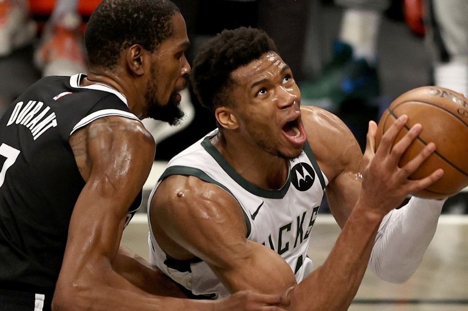 El griego Giannis Antetokounmpo sumó 40 puntos y 13 rebotes en un duelo histórico ante Kevin Durant, que terminó frustrado después de su impresionante estadística de 48 puntos, la mayor anotación en un séptimo juego de playoffs.