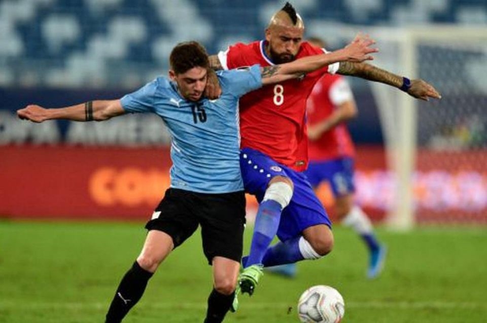 Uruguay y Chile empataron 1 a 1, en un discreto partido jugado esta noche en Cuiabá por la tercera fecha del grupo A de la Copa América Brasil 2021.