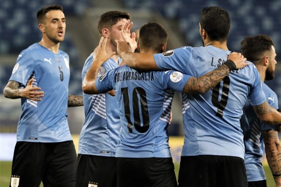 La Celeste se impuso por 2-0, por la anteúltima fecha del Grupo A, logrando su primer triunfo, tras un empate y una derrota, y el pase a la segunda ronda