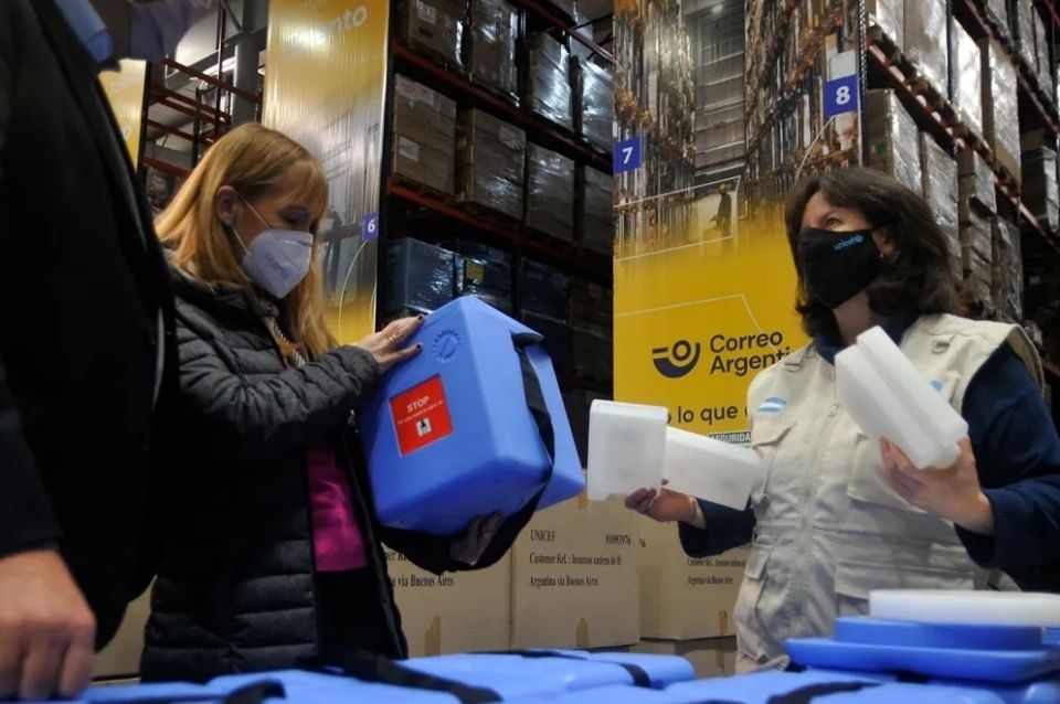 La entrega de los insumos tuvo lugar en el centro logístico del Correo Argentino, ubicado en la localidad bonaerense de Tortuguitas, donde estuvieron la secretaria de Acceso a la Salud, Sandra Tirado; el coordinador de Logística de la cartera sanitaria nacional, Juan Pablo Saulle; y la representante adjunta de Unicef en Argentina, Olga Isaza.
