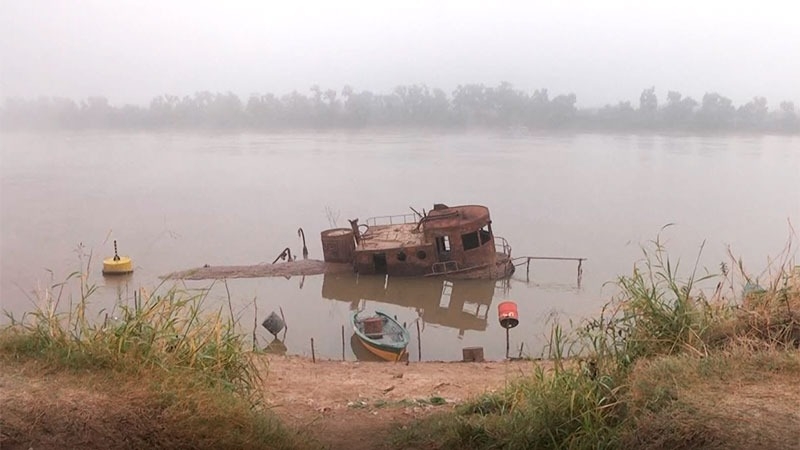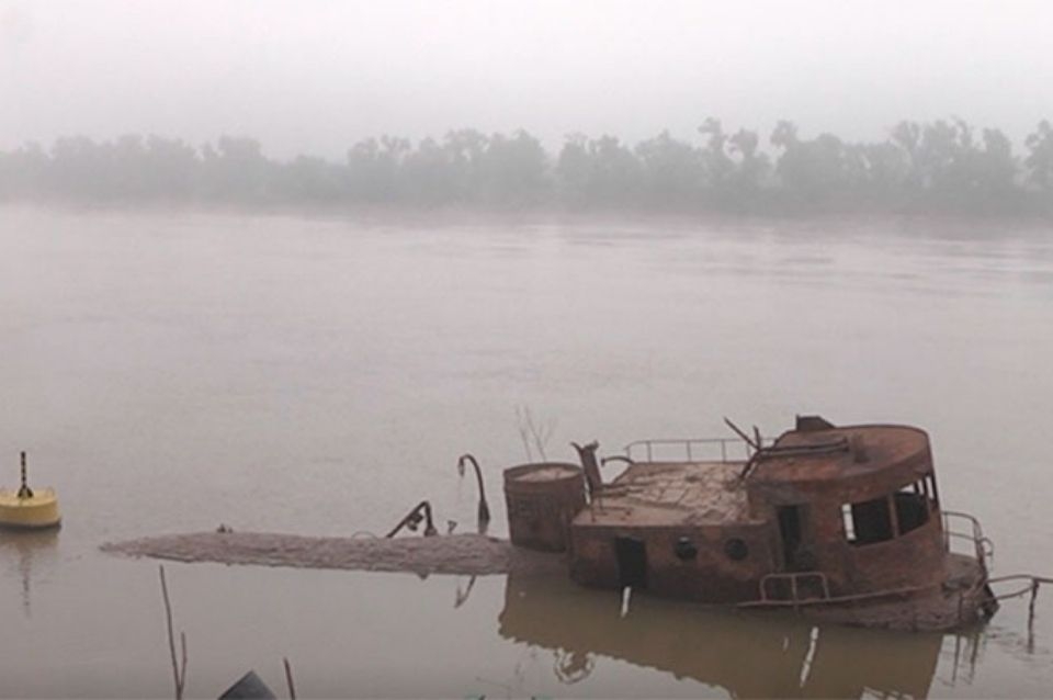 Foto: gentileza El Once TV. Además de las complicaciones por la bajante del río, la situación ofrece algunas postales que se pierden en los momentos de creciente. En la zona de las areneras del Puerto Viejo quedó a la vista el viejo remolcador que se hundió hace algunos años y que reaparece en cada retirada del río.