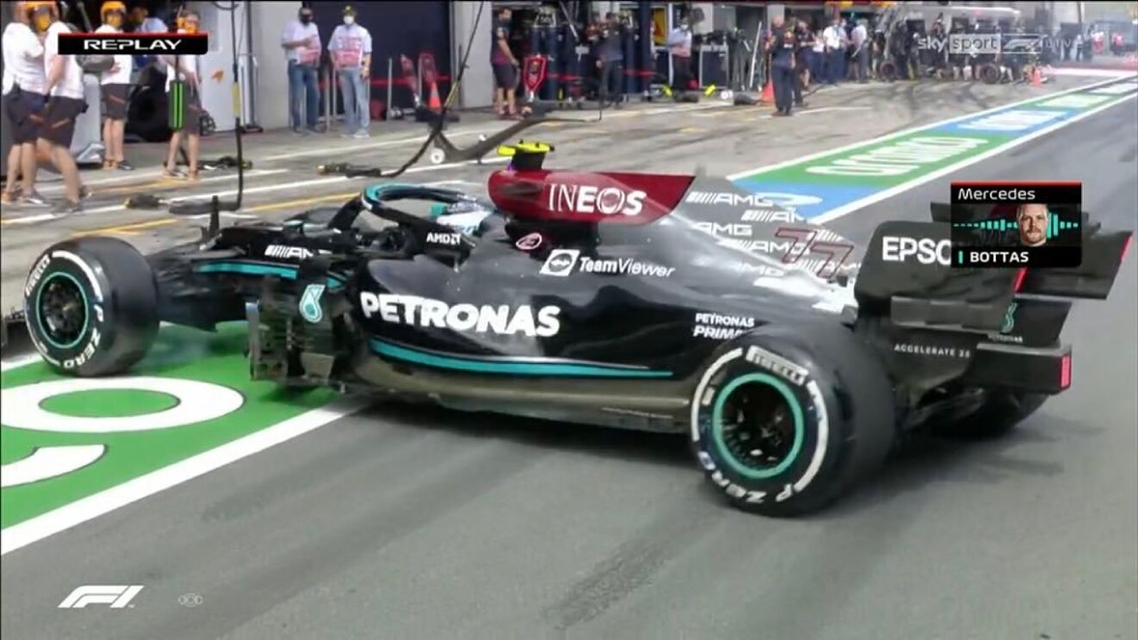 Bottas fue protagonista de una inédita situación durante el desarrollo de la segunda práctica libre que la Fórmula 1 llevó adelante en el circuito Red Bull Ring de Austria. El finlandés salió de su cajón y al momento de integrarse a la calle de boxes su auto se cruzó y quedó detenido en pleno pitlane.