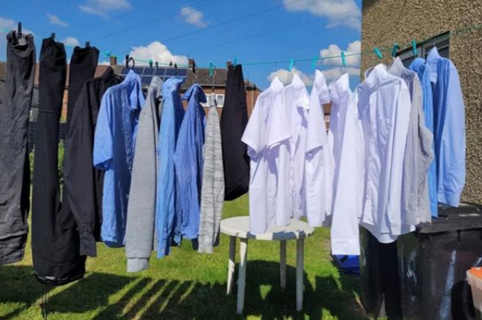 La mujer inglesa tiene un sistema especial para tender la mayor cantidad de ropa posible en una sola soga, ya que no cuenta con demasiado espacio. Y publicó una foto en Facebook, que recibió miles de “Likes” y agradecimientos de muchos usuarios que cambiaron su manera de lavar a partir de su posteo.
