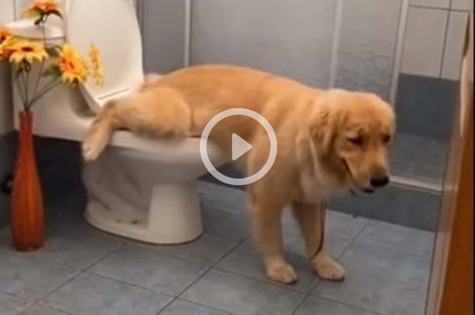 Desde la cuenta @Tokyo_the_golden, publicó una filmación del golden retriever en el baño con su correa de paseo puesta, haciendo sus necesidades fisiológicas dentro del inodoro.