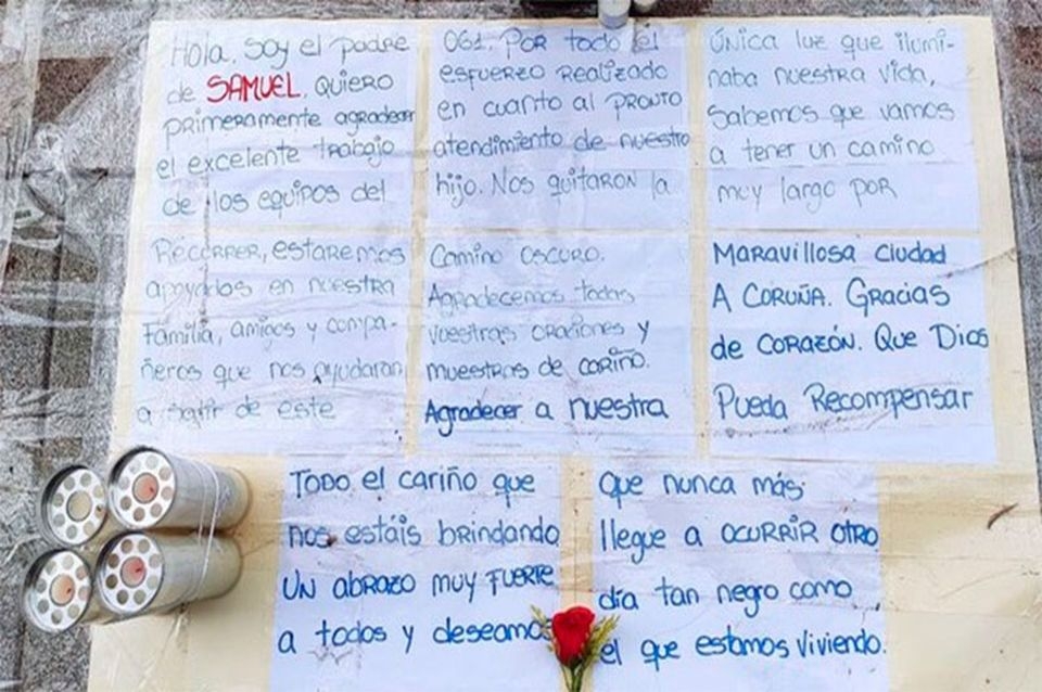 En tanto, su padre escribió una emotiva carta que dejó depositada donde el joven recibió la mortal paliza: “Hola, soy el padre de Samuel, quiero primeramente agradecer el excelente trabajo de los equipos del 061 por todo el esfuerzo realizado en cuanto al pronto atendimiento de nuestro hijo”.