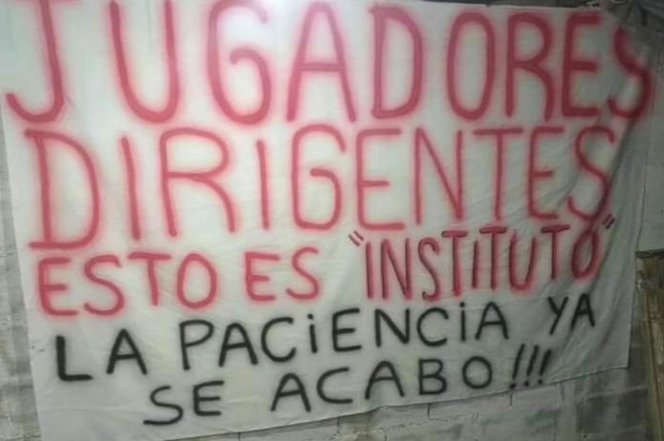 "Jugadores, dirigentes, esto es Instituto. La paciencia ya se acabó", se puede leer en una de las banderas que se colgó en el lugar de entrenamiento, según publicó el periodista Julio Gel.