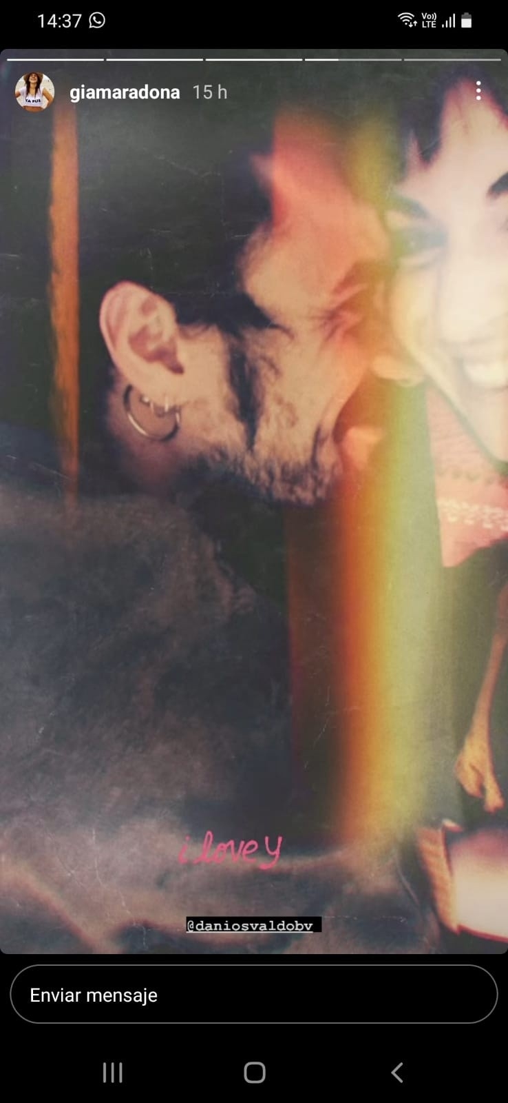 La hija del Diez se adelantó a su pareja y publicó una tierna imagen de ambos en la que están sonriendo. Con un gif que escribe “I love you” (te amo) completó la historia de Instagram que fue replicada por el ex futbolista en su cuenta.