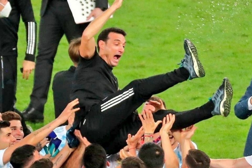 El DT de Argentina, Lionel Scaloni, aseguró que "cuando todos tiran para adelante es difícil que al equipo no le vaya bien", tras el título obtenido esta noche en la Copa América con la victoria en la final sobre Brasil, 1 a 0 en el legendario estadio Maracaná.