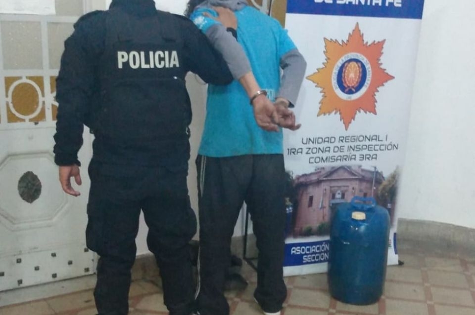 Según consta en el reporte policial, los agentes fueron comisionados por la Central de Emergencias 911 a la intersección de Av. Alem y Alberdi donde se encontraba un sujeto con un bidón de 20 litros sustrayendo combustible de un camión.